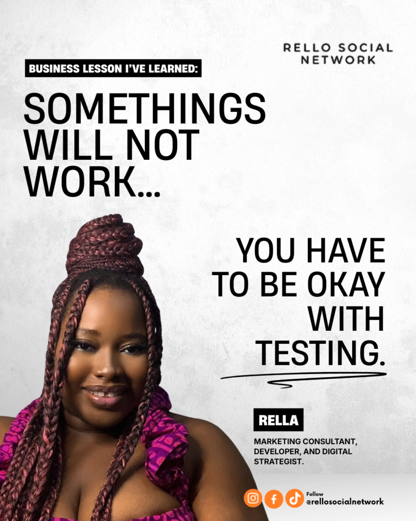 Important Business lesson I’ve learned: Somethings will not work, You have to be okay with testing.
